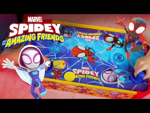 Bring home the action with this officially licensed Spidey and His Amazing Friends Wood Air Hockey Table!