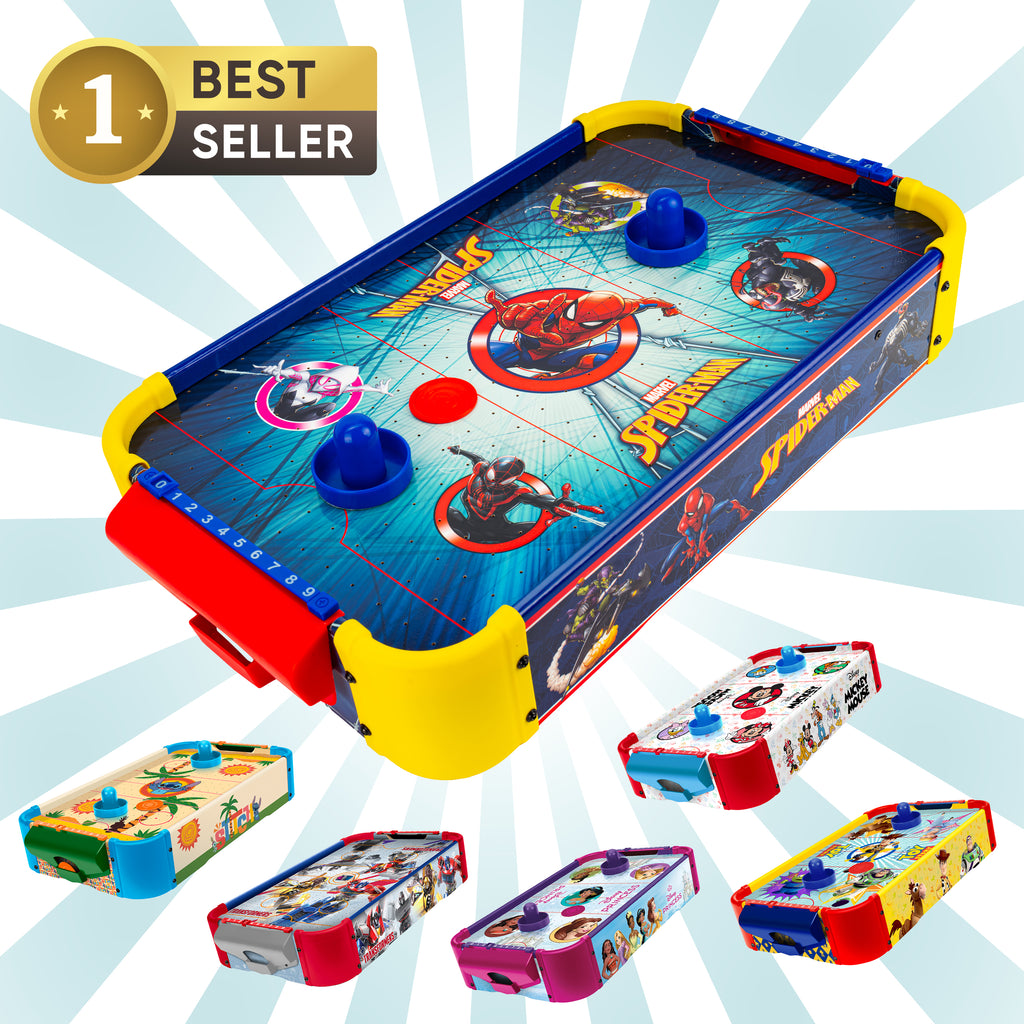Compact, lightweight, and easy to set up, this action-packed mini air hockey table delivers big excitement in a portable size. Choose your favorite character theme and let the fun begin!