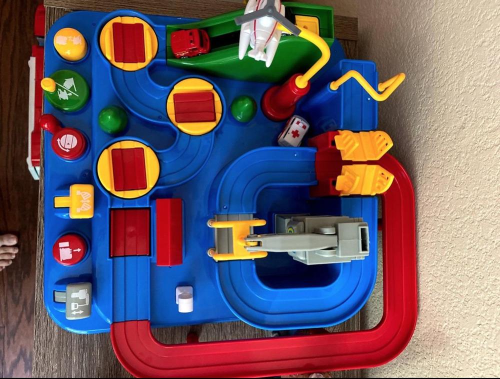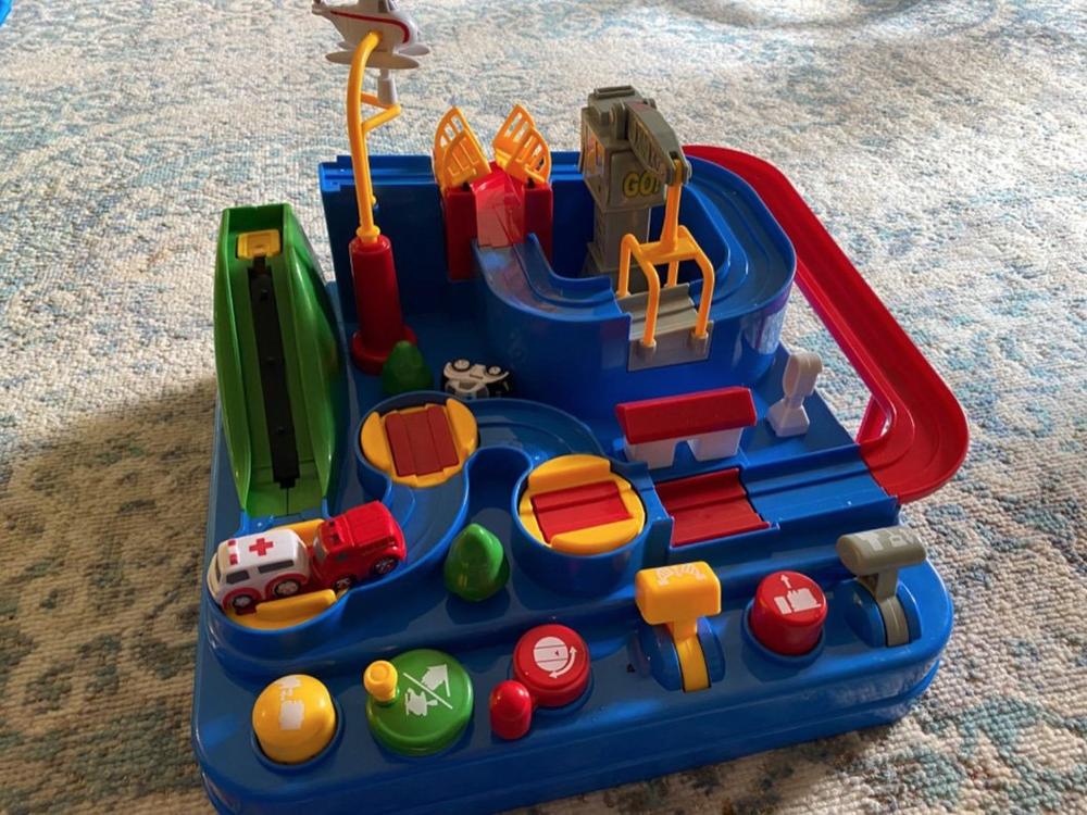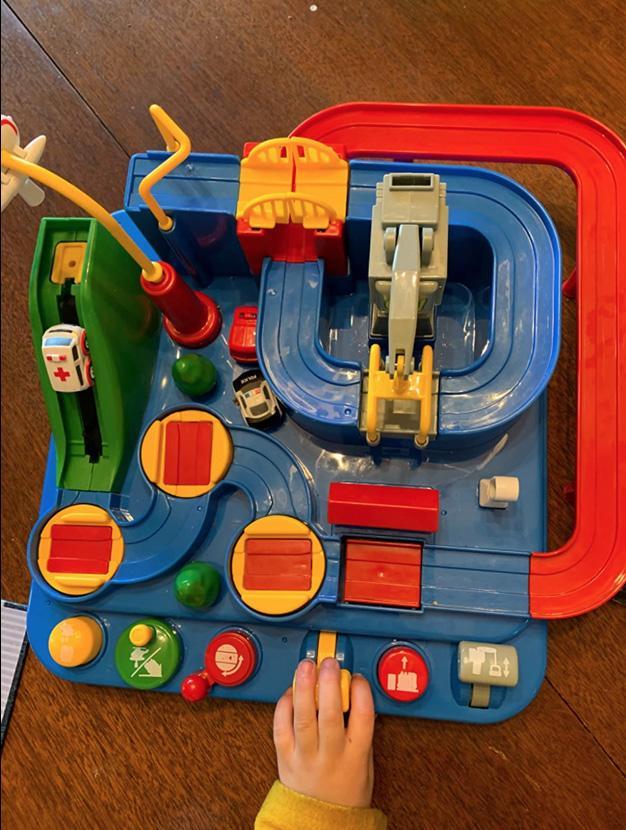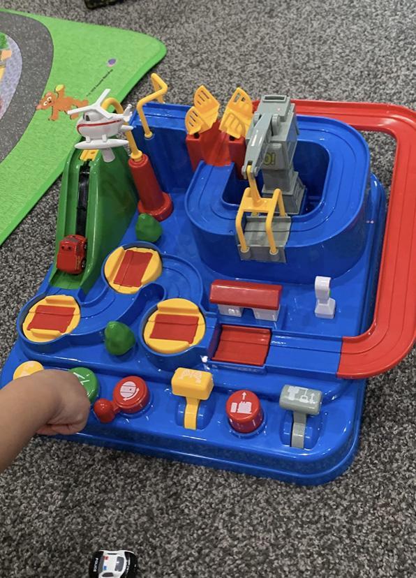 This is a cute toy that my 2 1/2 grandson loves. We showed him how to work the buttons and levers to make the cars move along the track and after some practice, he had it down. He enjoys playing with it and we love that he has to focus to make everything work.