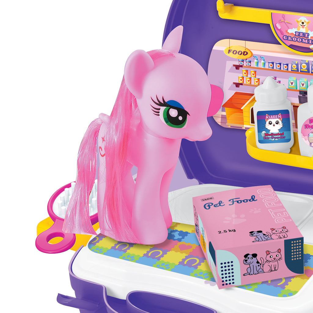 - 16-piece playset with everything for pretend grooming
