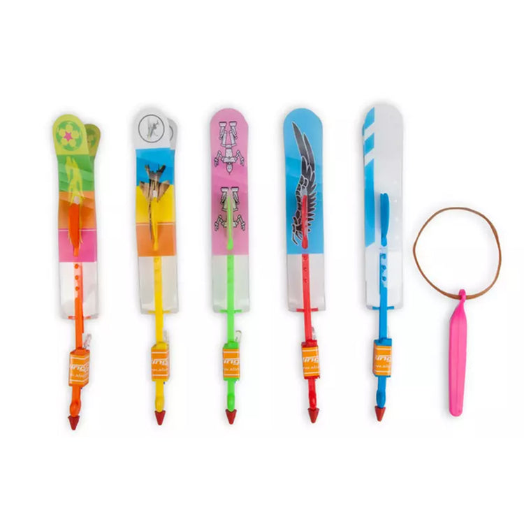 - Elementos incluidos: paquete de 5 helicópteros de eslinga