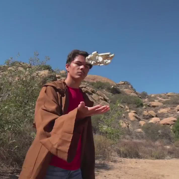 ¡La nave que recorrió el Kessel Run en menos de doce parsecs por fin está en tus manos! Presentamos el cuadricóptero con sensor de movimiento Halcón Milenario de World Tech Toys. Este increíble cuadricóptero cuenta con tecnología de detección de movimiento, lo que te permite controlarlo con las manos. Simplemente enciéndelo, lánzalo al aire y observa cómo el Halcón Milenario cobra vida y se mantiene en el aire. Acércate a él con la mano y el cuadricóptero se alejará volando. Coloca ambas manos a los lados del Halcón Milenario y realizará una increíble voltereta. El cuerpo del cuadricóptero está hecho con tecnología Flex-Frame, lo que lo hace muy duradero, igual que el Halcón Milenario real. Este chico malo puede incluso superar en velocidad a las naves estelares imperiales. No a los cruceros gigantes locales, sino a las grandes naves cornelianas. Imprescindible para los fans de Star Wars: ¡consigue hoy mismo el cuadricóptero con detección de movimiento del Halcón Milenario!