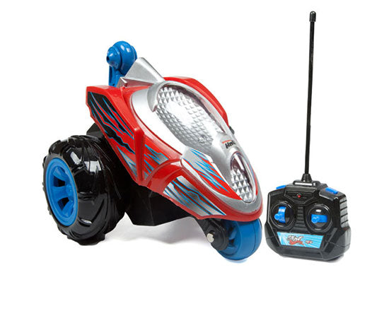 ¡Conduce por cualquier lado del Stunt Twisterz Stunt Hawk 1:24 RTR, coche eléctrico RC! Este alocado vehículo RC es divertidísimo, tiene luces LED y puede hacer trucos increíbles. Maravíllate con giros, volteretas y caballitos con facilidad. ¡Condúcelo boca abajo, boca arriba e incluso de lado con solo presionar un botón! Solo necesitas 4 pilas AA al vehículo y estará listo para correr. ¡Dale caña con el Stunt Twisterz Stunt Hawk 1:24 RTR, coche eléctrico RC!