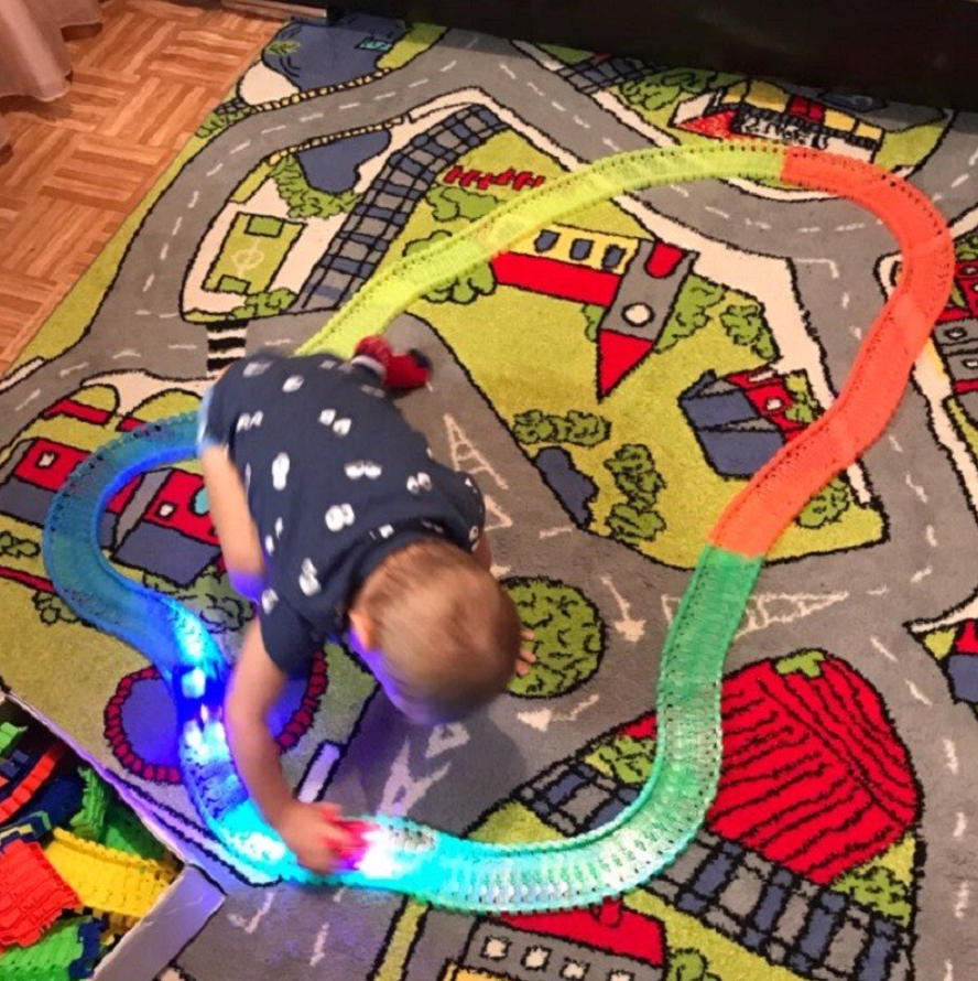These track toys definitely never go out of style. I remember having one similar as a child, this one looks like the improved version. My son is fascinated that the tracks can be put together in so many different ways. I confess that I'm also excited about it, it was one of my favorite toys.