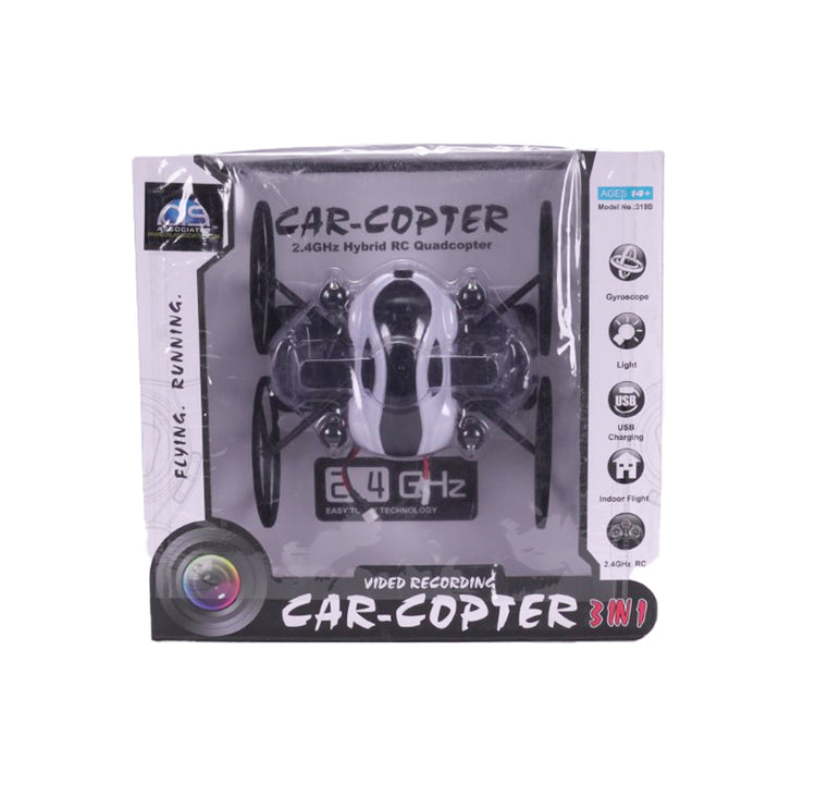 Soar through the air or cruise on the ground with the CIS Quad Car 2.4GHz 4CH RTF Camera RC Mini Drone! This amazing RC is a hybrid RC Drone that is capable of landing and cruising across the floor. Built with inverted rotor blades and a 6-Axis Gyro System, you'll have a smooth and stable flight every time. What tops it off is the included on-board camera so you can capture incredible video of your Car-Copter. Load your footage from the included 4GB Micro SD Card and share it with your friends! With everything you need for an awesome day of flying and driving, get the CIS Quad Car 2.4GHz 4CH RTF Camera RC Mini Drone now!