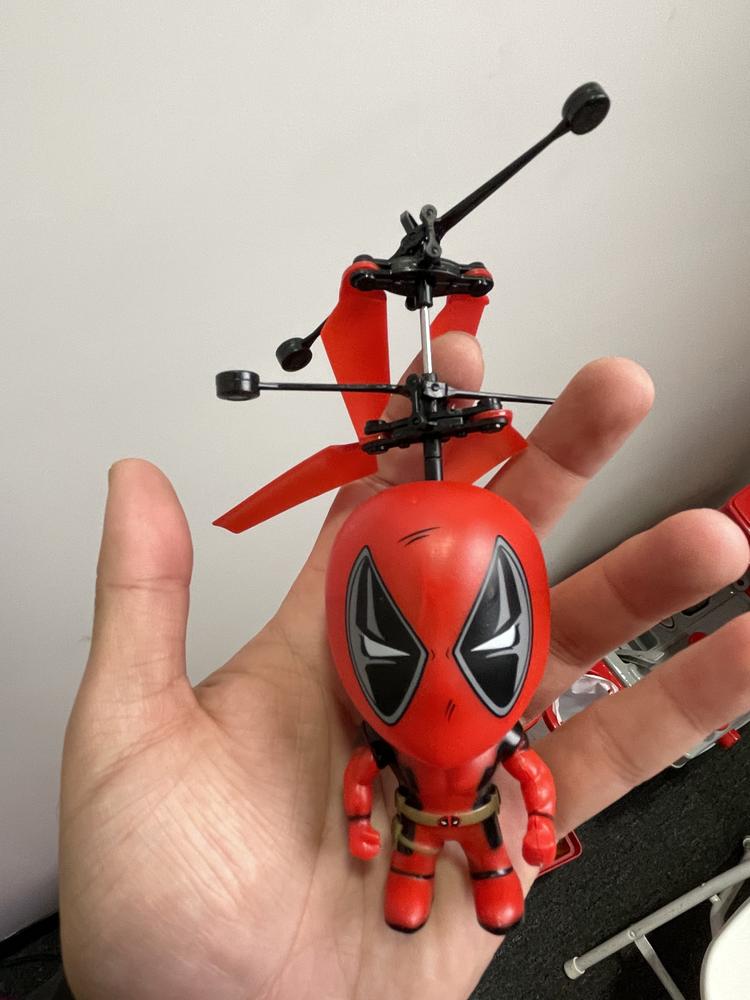 Introducing the Marvel Licensed Deadpool 3.5 Inch Flying Figure IR UFO Big Head Helicopter! Complete your objective with everyones favorite merc with a mouth Deadpool! This big head helicopter features a coaxial rotor system for precise movement and increased stability when hovering. The UFO Big Head Helicopters body is also constructed with a durable material making it strong yet lightweight so you don't have to worry about breaking anything when it lands a bit too rough. Simply turn on and launch to get started, holding your hand underneath it will keep it hovering up in the air. When done flying you can try and grab it but you can also use the included remote control to shut down and recover safely, it's that easy! A must have for fans of helicopters, get the Marvel Licensed Deadpool 3.5 Inch Flying Figure IR UFO Big Head Helicopter today!