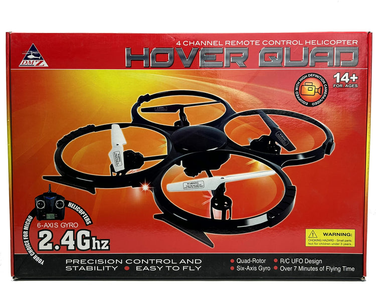 See your neighborhood like never before with the DMZ Hover MIC1270 Camera 4.5CH 2.4GHz RC Drone! This amazing indoor/outdoor UFO RC drone features a 4.5CH 2.4GHz transmitter, giving you 6-axis movement and control, while blocking pesky interference from other RC pilots. This RC drone has a durable body making it strong yet light weight, so you don't have to worry about breaking anything if your landing wasn't perfect. But if you do, it comes with plenty of spare helicopter rotor blades to get you back into the air. Pull off some amazing stunts like loops, rolls, flips and even upside down flight! Record all the action with the HD camera. Download the movies to your computer and show it off to all your friends! And it's all RTF (Ready To Fly)! All you need to do is charge the included LiPo battery with the charger and get 4 AA batteries for the transmitter and you are on your way. Explore and record today with the DMZ Hover MIC1270 Camera 4.5CH 2.4GHz RC Drone!