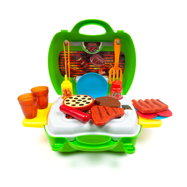 Let your children's imagination run wild with the Imagine Zone Dream Barbeque 23 Piece Suitcase Playset. This barbeque suitcase playset is made up of vibrant colors to help kids with their visual development and to get them excited by grabbing their attention. The 23-piece playset comes with a variety of utensils, plates, cups and more to keep them playing for hours. It's lightweight and compact design lets you take the fun everywhere. Kids will love to play pretend with this Imagine Zone Dream Barbeque 23 Piece Suitcase Playset!