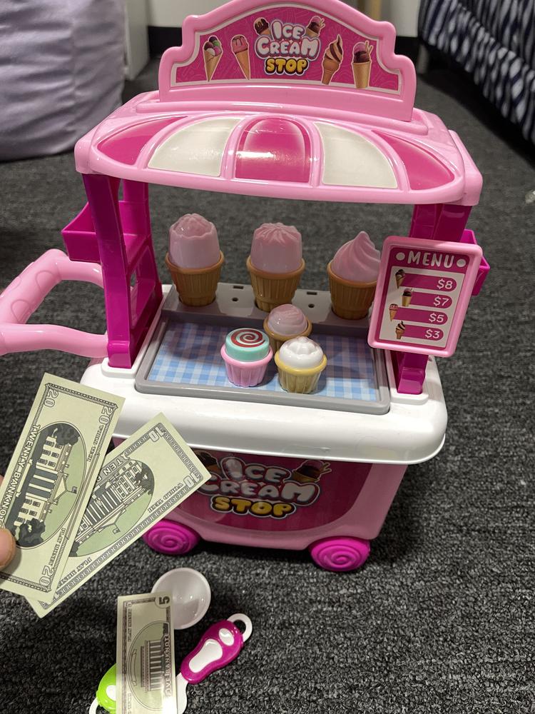 Probably the best toy I ever bought for my two year old granddaughter which also keeps her 4 year sister evenly engaged. They have spent fair amount of time playing it and haven't gotten tired even after two months. They are always tryiong to sell ice cream wherever they go! Haha
