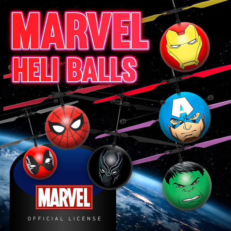 Introducing the Marvel Licensed Avengers IR UFO Heli Balls! Featuring a coaxial rotor system for precise movement and increased stability when hovering. The UFO Heli Ball's body is also constructed with a durable material making it strong yet lightweight so you don't have to worry about breaking anything when it lands a bit too rough. Using infrared motion sensitive technology, the UFO heli ball will detect nearby objects and is programmed to move away from them. Simply turn on and launch to get started, holding your hand underneath it will keep it hovering up in the air. When done flying you can try and grab it but you can also use any IR remote control to shut down and recover safely, it's that easy! A must have for fans of helicopters, get the Marvel Avengers Iron Man IR UFO Heli Ball today!