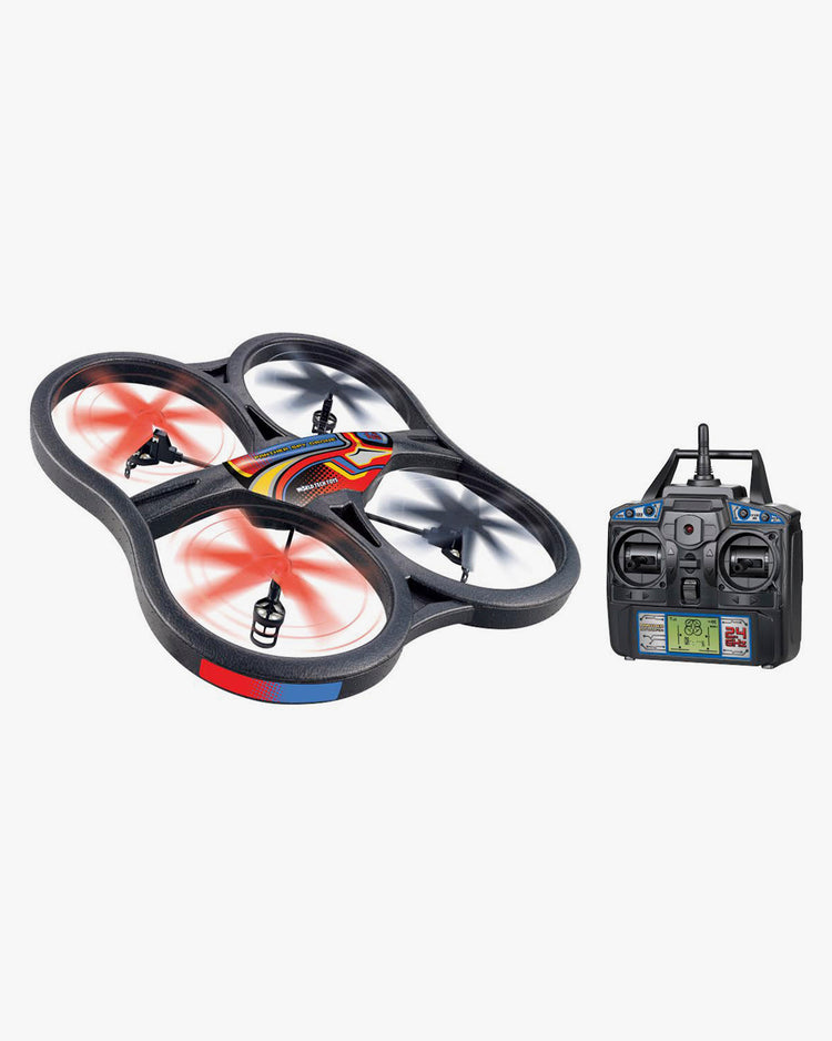 World Tech Toys has released the Panther UFO Video Camera 4.5CH 2.4GHz RC Spy Drone and it is a top performer. The integrated adjustable camera lets you capture pictures and videos to a Micro SD card (Model ZX-35989 for no camera option) with just a push of a button on the transmitter. The 4.5 channel radio control lets you move forward, backward, up, down, as well as rotate and lateral movement, full 3D flight capabilities. built-in gyro stabilization gives you amazing agility while remaining extremely stable and there is also a 360° flip stunt mode which lets you easily pull off loop stunts with the press of a button! 2.4GHz radio technology allows you to control the drone at an incredible range with no radio interference. Integrated LCD display on transmitter gives you signal strength, battery level, channel display, and trim display data all at a glance. This is one technologically advanced, yet easy to fly machine. All you need are 4 AA batteries and you're good to go! Don't wait, the Panther Spy Drone is ready to fly!