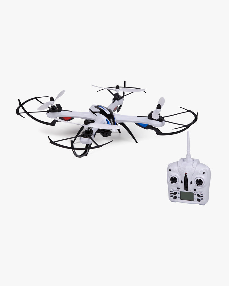 Be the eye in the sky with the World Tech Toys Prowler Camera RC Spy Drone. This awesome drone comes with all the features, and maneuverability that you need. With an on-board 720p camera capable of capturing both photo and video, you can get that amazing aerial footage you've been craving. Making it easier to control your Drone, is the "Easy Mode" function, activated by the simple press of a button on the 2.4GHz transmitter. By using this feature, it limits the Drones direction to be based on your actual standing position, making it easier to tell which way your Drone is pointing from a distance. You can even perform insane aerial maneuvers with the press of the "Flip Mode" button and impress your friends, all while capturing it on camera. For more advanced RC pilots, you have the option of three flight speed modes. With this awesome Drone being totally ready-to-fly, what more could you ask for? Get the World Tech Toys Prowler RC Spy Drone, today!