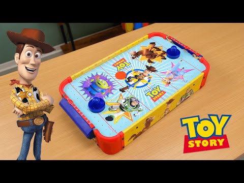 Unleash the fun with this officially licensed Toy Story Electronic Tabletop Air Hockey Table! Join Woody, Buzz Lightyear, and the gang for fast-paced arcade action featuring vibrant, full-color Toy Story graphics. The smooth wooden playing surface and easy manual score trackers make every match exciting and competitive. Whether it’s family game night or playtime with friends, this Toy Story air hockey table delivers hours of laughter and adventure. Built to last and simple to set up — it’s the perfect addition to any little Space Ranger’s playroom!